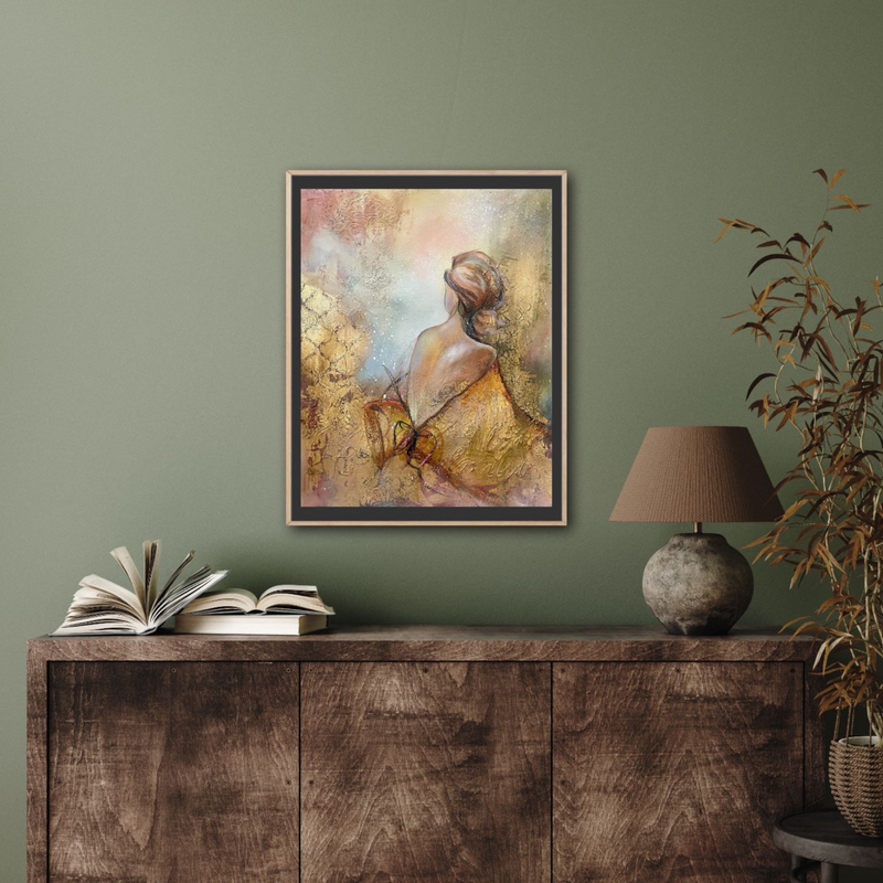 She holds a quiet, intimate energy, gently turning inward, wrapped in a moment of stillness. Speaking to the softness of being, a space where your heart and spirit can rest in quiet reflection. Here, the past and present blend seamlessly, allowing your soul to breathe, dream, and embrace its inner light.